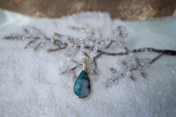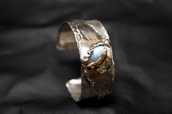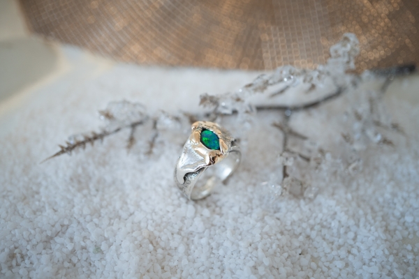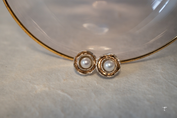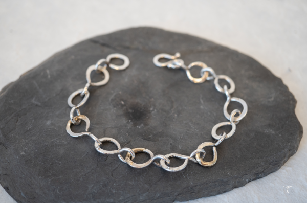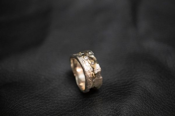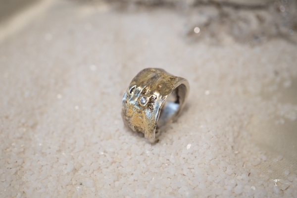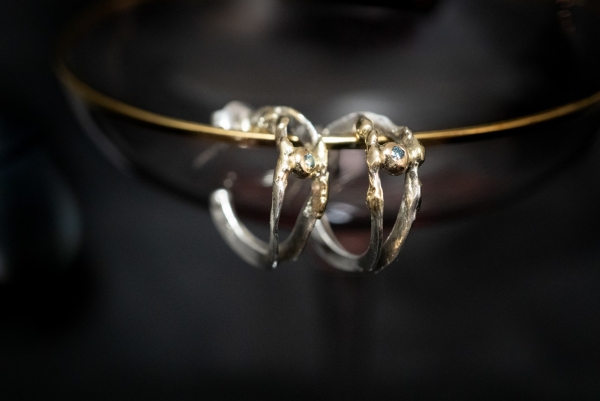 Jedes Schmuckstück ist ein handgeschmiedetes Unikat, hergestellt aus 925 Silber und 750 Gold / 18 Karat.